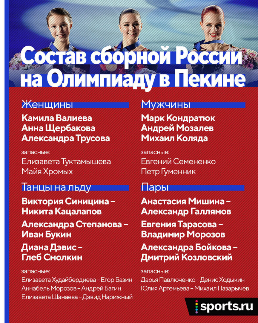 Вообще, состав на Игры на 90% состоит из медалистов чемпионата России. Единственное исключение – Синицина и Кацалапов, которые не докатали внутренний турнир, но вряд ли кто-то рассчитывал, что действующих чемпионов мира оставят без Олимпиады.