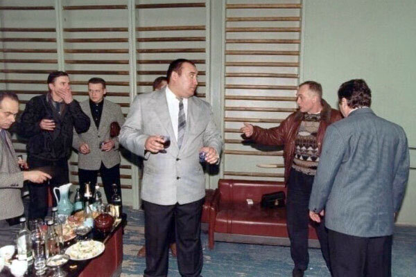 3. Братва обожала проводить банкеты. Многие рестораны выживали в тяжёлые 1990-е в основном за счёт таких мероприятий. Но банкет могли провести и обычном спортзале, как на фото.