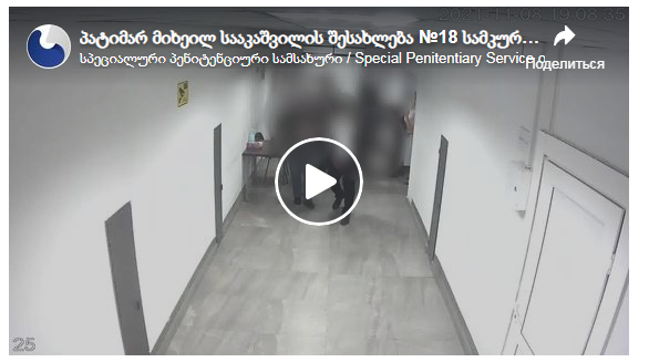 На опубликованной видеозаписи от 8 ноября 2021 года видно, что Михаил Саакашвили отказался добровольно зайти в здание тюрьмы, поэтому четыре тюремщика с большим трудом вынуждены были нести его за руки и за ноги по коридору. Каждый сотрудник держал Михаила Саакашвили за руку или за ногу. А поскольку заключённый физически сопротивлялся законным требованиям сотрудников тюрьмы, поднять его высоко от пола у сотрудников не было ни сил, ни возможности. Сотрудники тюрьмы были вынуждены нести заключённого частично волоча по полу, как вещь. Вероятно, Михаил Саакашвили вообразил себе, что обязательные для каждого заключённого тюремные правила на него не распространяются. Ему наглядно показали, что это не так. Ведь каждому человеку в здравом уме должно было ясно с самого начала, что, в любом случае, его в здание тюрьмы или заведут, или занесут, так какого же чёрта нужно было совершенно без толку упираться? Позор.