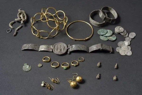 В одной из комнат разрушенного здания под слоем пепла и золы археологи дошли до уровня пола, среди разбитой керамики нашли обугленные финики, фиги, горох, пшеницу. Их оказалось не так уж много, помещение явно не складское, скорее все это упало на пол со сгоревшей деревянной полки, а, следовательно, тут, вероятно, находилась кухня. Причем наличие фиников и фиг, не произраставших на Британских островах, указывало, что жители дома явно не кельты (бритты), а выходцы со средиземноморского региона, то есть, сами римляне. При расчистке уровня чуть ниже пола древнеримского здания археологи почти сразу наткнулись на… золото.