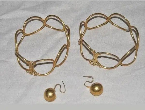 Вторая группа — три тонких изящных золотых браслета, явно женские.