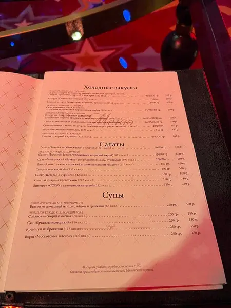 Цены можно назвать выше среднего, но это все компенсируется вкусом блюд и эмоциями от места, где вы находитесь. Рассмотрим меню подробнее.