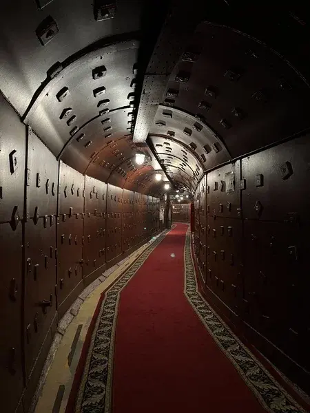Удивительно, но в центре Москвы, в районе м. Таганская, можно сходить в ресторан, который расположен на глубине 65 метров под землей. Ресторан был открыт при рассекреченном в 2006 году бункере Минсвязи СССР №42. Сейчас здесь находится Музей холодной войны. о котором я расскажу в одном из следующих постов, ресторан и развлекательный комплекс с лазертагом.