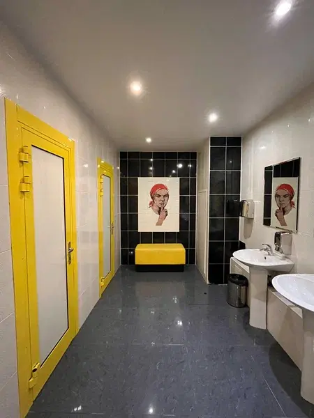 Под конец оценим интерьеры на входе в ресторан, у гардероба, где на стенах висят мои любимые советские плакаты.
