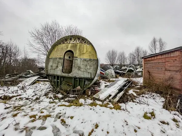 Этот самолёт списали несколько десятков лет назад. Нынешний хозяин его выкупил (все документы о списании впорядке) и перевёз к себе на огород. Как удалось перевести такую махину в небольшой посёлок - история умалчивает. На самом деле, самолётов там три. Но все они разобраны на запчасти.