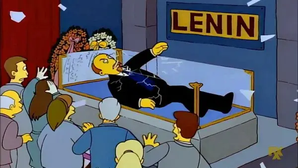 Кстати, интересный момент. В мультфильме Симпсоны есть сюжет о том, что в 2024 году Ленин проснётся и провозгласит о том, что СССР жив. Такую точность сроков, объяснил помощник сценариста этого мультфильма. Он сказал, что некий журналист, который побывал в архиве Мавзолея, рассказал ему о завещании Ленина.