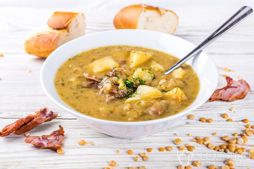 Многие из нас отдают предпочтение гороховому супу с копчёностями. Но как приготовить гороховый суп, если их нет, а супа очень хочется? Гороховый суп можно приготовить не только с копчёными рёбрышками, копчёной колбасой и копчёными сосисками, но и с курицей, говядиной, свининой, мясными фрикадельками и даже с солёными огурчиками и грибами. Каких только рецептов не существует! В разных странах и даже в разных семьях ответы на вопрос: «Как приготовить гороховый суп?» очень разные. Однако самым вкусным всегда останется тот, который приготовлен с хорошим настроением!