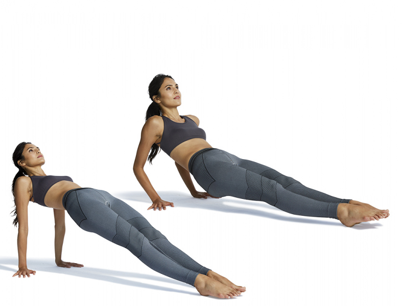 Адептам йоги посвящаем новый вариант тренировки, разработанный членом олимпийской сборной Америки Келли Джеймс Прекурт. «Упражнения помогут укрепить мышцы рук и отлично проработают пресс, — комментирует Келли. — Во время каждой позы — будь то асана на полу или в положении стоя — необходимо делать то, что инструкторы называют «root to rise» (стабилизировать позу и поднимать корпус вверх»). Эта практика (вы вынуждены постоянно работать на баланс) включает в работу большинство ваших мышц».