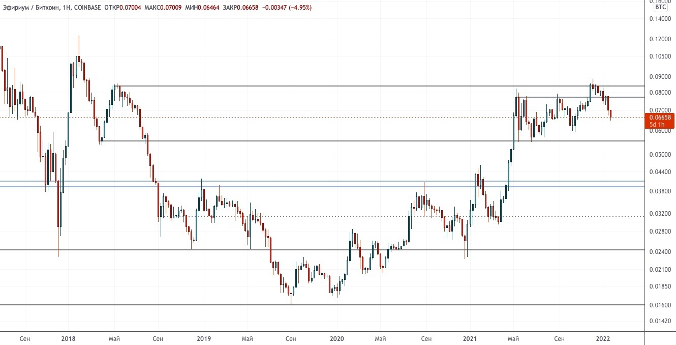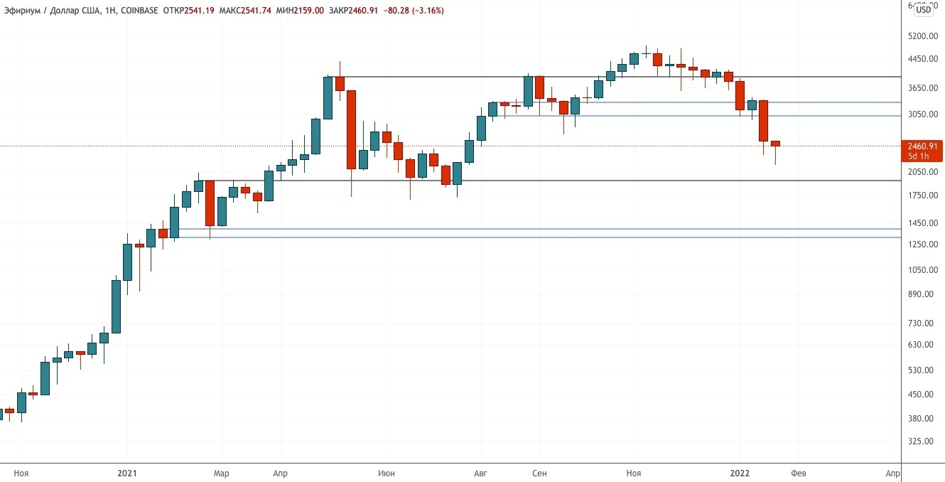 Этот уровень определяют минимальное месячное закрытие у $35–37 тыс. и недельная структура у $32–34 тыс. Мы обновили уровни на графике, чтобы немного сузить эту область.