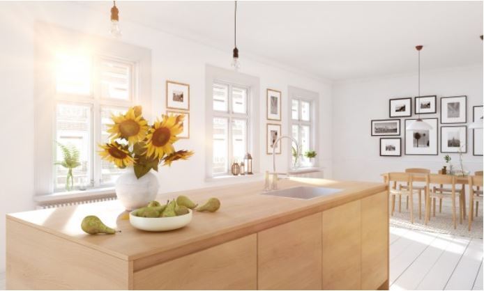 Деревянная отделка, плинтусы, дверные коробки и шкафы придают шарм и характер, но могут также создавать ощущение мрачности. Перекрасьте деревянную отделку для придания ей более современного вида и обновите тяжелые кухонные шкафы с отделкой из более светлого дерева (дуб, ясень, береза) или белого глянцевого ламината.
