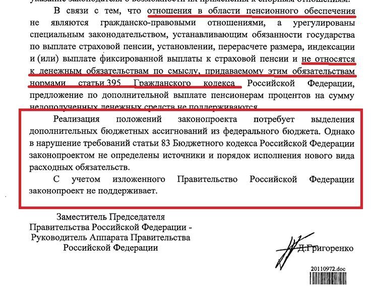 Интересна реакция Правительства РФ на этот законопроект. В заключении за подписью заместителя Председателя Правительства Д. Григоренко указано, что законопроект ими не поддерживается.