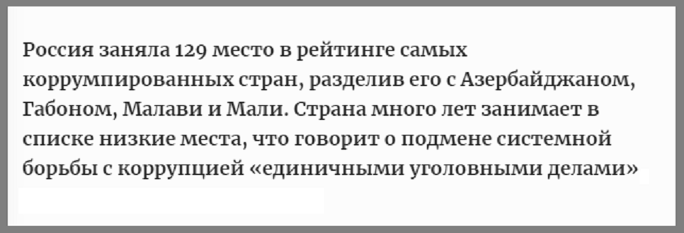 Кому больше доверять? Старшему аналитику ИАЦ, которая входит в топ 5-ти самых авторитетных аналитиков РФ или Члену Совета при Президенте Российской Федерации по противодействию коррупции, с которой он безуспешно борется, внося на рассмотрение Госдумы, например, такие законы, как «Освобождение чиновников от ответственности за «вынужденную коррупцию».
