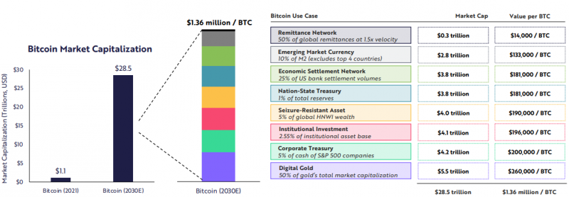 В 2030 году Биткоин будет стоить $1 360 000, а капитализация Эфира достигнет $22.5 трлн – ARK Invest