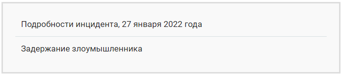 Подробности инцидента, 27 января 2022 года