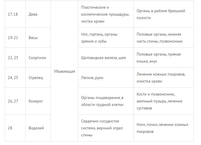 - 17-28 февраля, убывающая фаза. Самый удачный период для плановых медицинских процедур. В такие моменты организм хорошо реагирует на лечение. Астрологи рекомендуют планировать поход к врачу именно на это время.