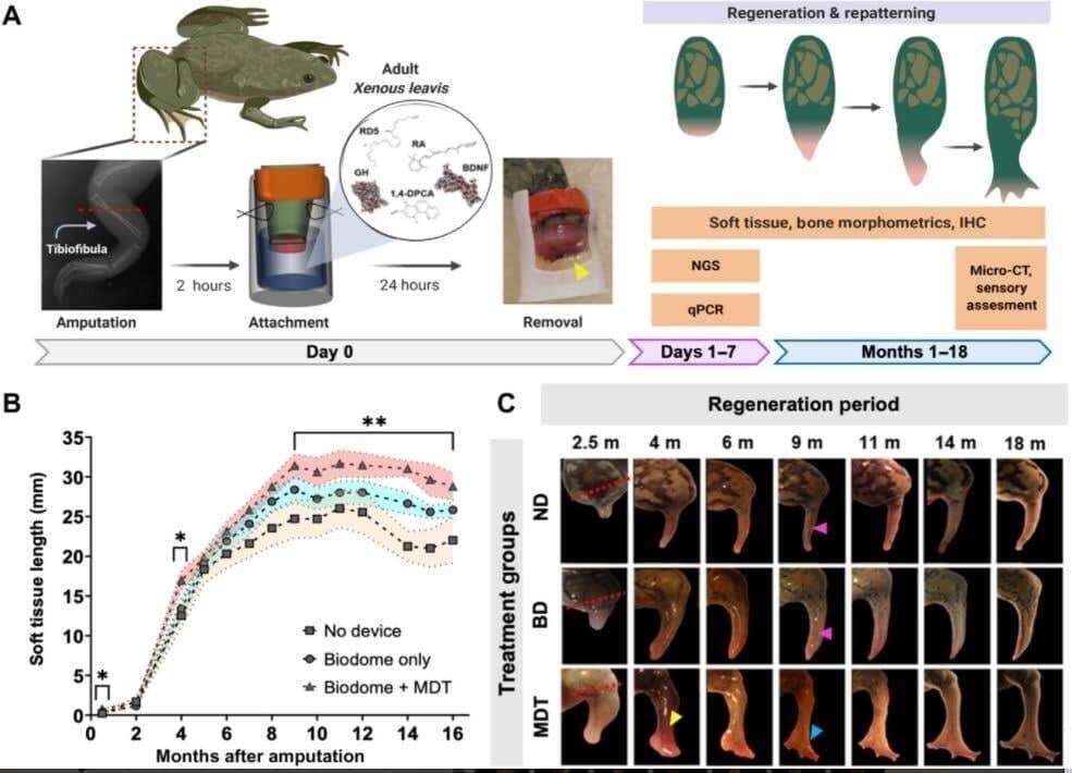 Команда биологов из США и Канады смогла заново отрастить лягушке отрезанные лапки — для этого использовали биореакторы с регенерирующим коктейлем.