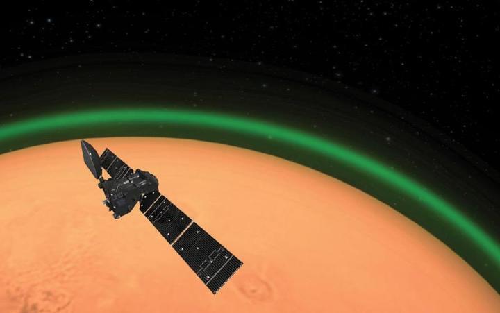 Анализ данных наблюдений подтвердил зеленый свет. Этот свет был самым сильным около 80 километров и менялся с расстоянием между Марсом и Солнцем.