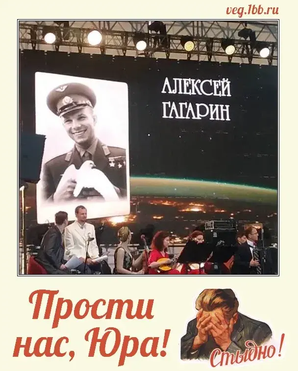 Чтобы что-то пропихнуть - нужно провести кучу согласований, и никого, ничего не смутило. Иными словами, если начальник поставил подпись, то зачем дальше думать – подписываем не глядя. Например, никого не смутило имя Гагарина на плакате, главное - быстрее состряпать и выдать.