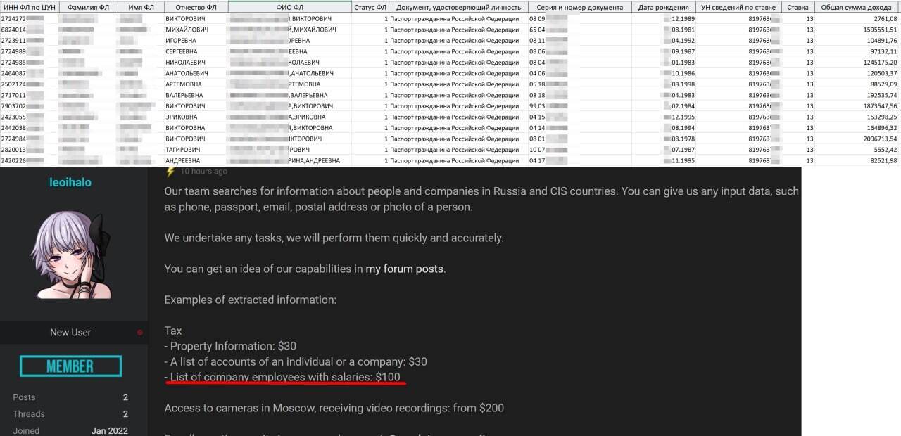 Пользователь форума, распространяющий данные сотрудников «Azur Air», в своем втором объявлении рекламирует услуги "пробива" и предлагает получить подобные выписки по другим компаниям за $100. 🙈