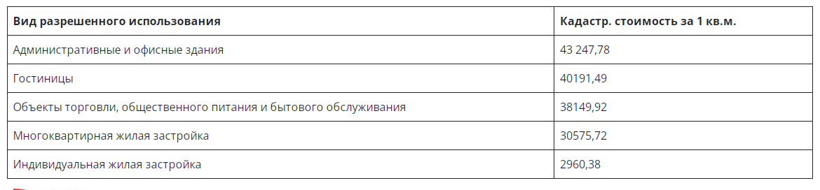 Чтобы представлять размер платы в Москве давайте посмотрим средние значения кадастровой стоимости для самых дорогих видов разрешенного использования: