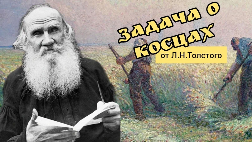 Конкретно эта задача — это задача от Льва Николаевича Толстого, который, не только толстенные романы, чтобы мучать старшеклассников, писал, но и в церковно-приходской школе в Ясной Поляне крестьянских деток учил.