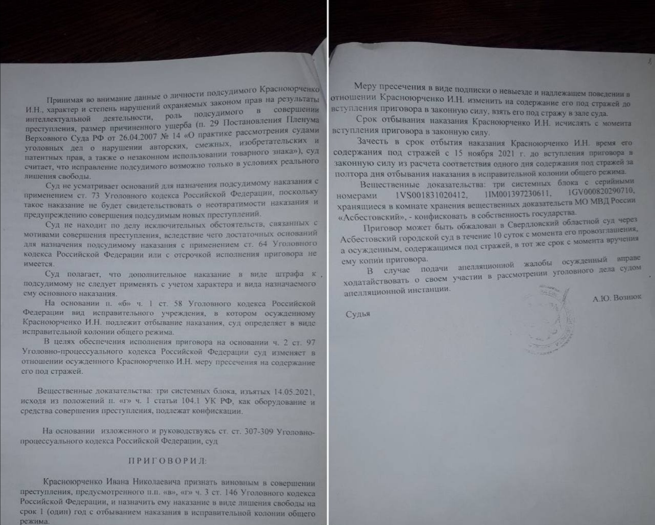 Отца троих детей Ивана Красноюрченко Асбестовский городской суд приговорил к году общака за использование на предприятии нелицензионной программы.