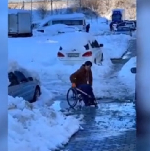 Инвалид-колясочник у аптеки сам расчистил подъезд