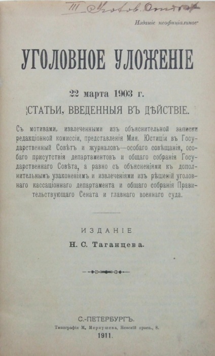 В Уголовном Уложении от 23 марта 1903 г. были выделены 3 основные