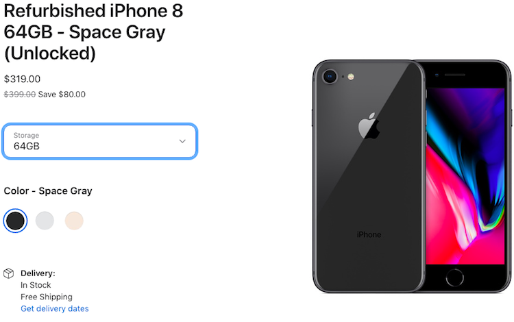 Apple неожиданно начала продавать официально восстановленные iPhone 8. Версия смартфон с накопителем ёмкостью 64 Гбайт оценивается в $319, что делает устройство самым дешёвым из продаваемых самой Apple смартфонов.