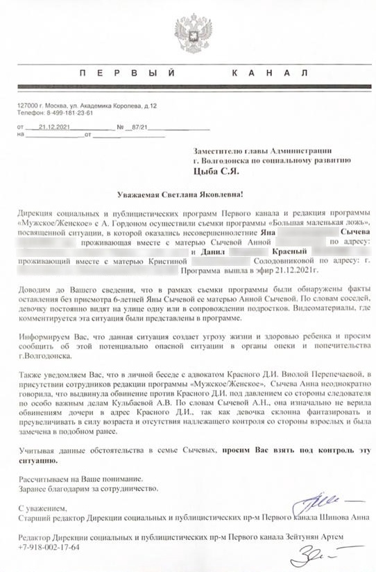 Поддержку семья мальчика получила и на программе Первого канала «Мужское/женское». Ведущие и приглашенные эксперты сошлись во мнении, что девочка не получает должного внимания от мамы и склонна к выдумкам.