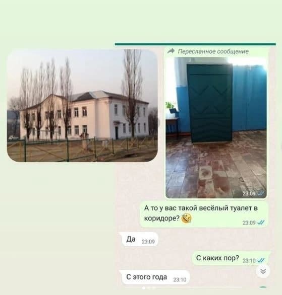 «Если бы нам не поставили такой туалет, то пришлось бы бегать в другое здание. Конечно, воспринимают это как ученики, так и учителя не с восторгом, но это альтернативное решение проблемы в нашем положении. Сейчас мы уже привыкли к этой "будке" и ждём окончания ремонта».
