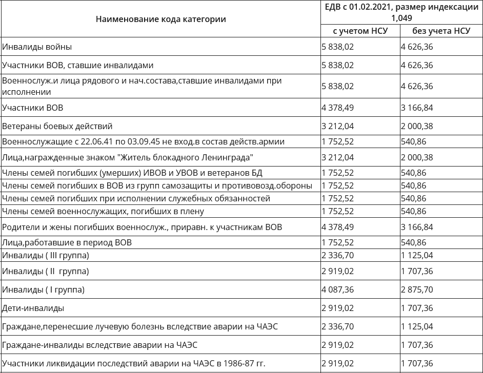 Таблица увеличения ЕДВ с 1 февраля 2022 года