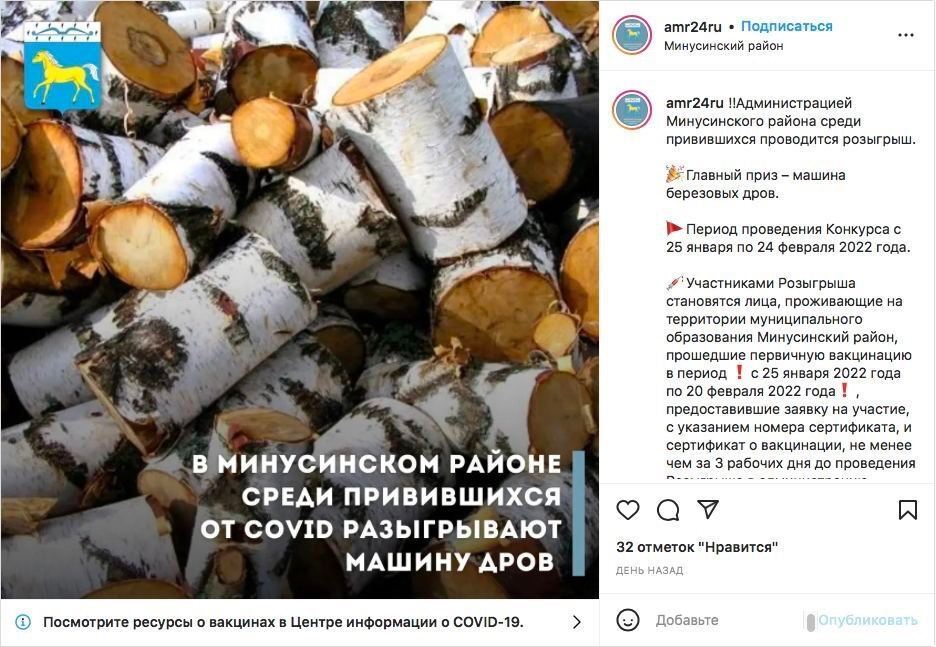 Жителей Красноярского края решили завлечь на прививку... березовыми дровами.