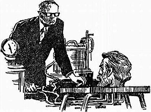 На самом деле мы даже сейчас, в XXI веке, ещё очень плохо понимаем – и что такое разум, и что такое сознание. Однако 100 лет назад энтузиастам дело казалось проще пареной репы. «Желудок выделяет желудочный сок, поджелудочная железа – гормон инсулин, а мозг точно так же выделяет мысли!» – с жаром спорили они. Нужно просто «всего-навсего» быстро соединить идущие к мозгу нервные окончания и кровеносные сосуды, после чего мозг будет жить и функционировать отдельно от тела.