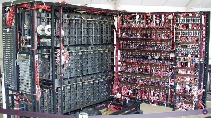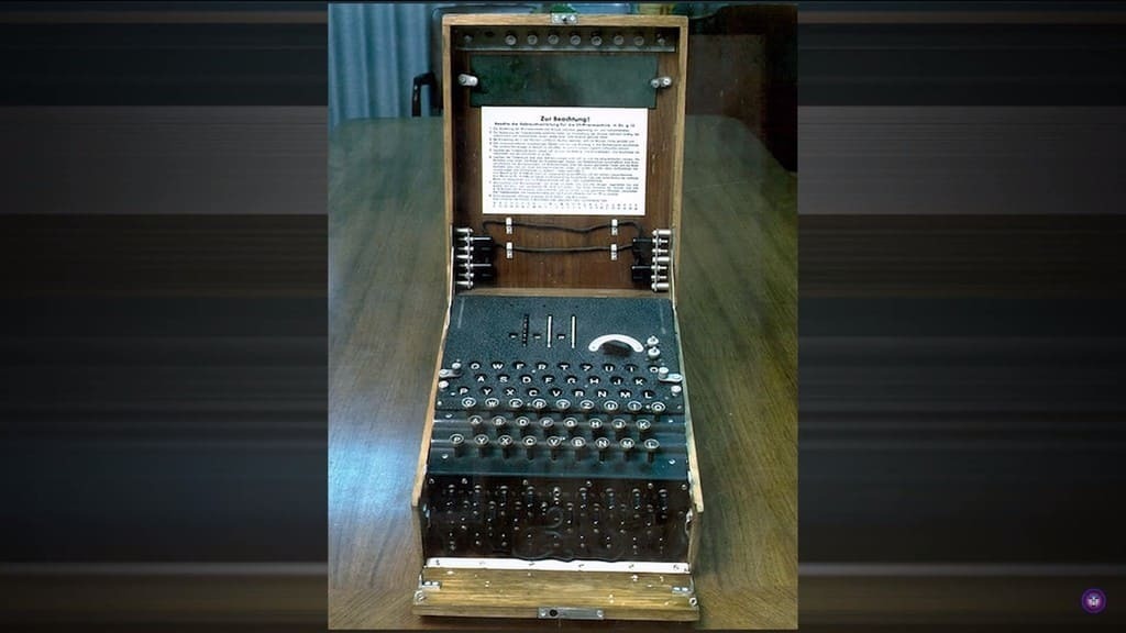 Вот она! Похожа на внебрачного ребенка уродливого чемодана и пишущей машинки. «Энигма» работала путем постоянного изменения сочетаний букв. Для примера: если вы несколько раз нажимаете на одну и ту же клавишу, то машина выдает постоянно хаотичные буквы. Казалось бы, связь в шифре найти просто невозможно. Нет никакого способа узнать, что будет дальше? если у вас нет понимания как настроены роторы. Задача усложнялась тем, что ключ шифрования для роторов менялся каждый день. Для расшифровки сообщений «Энигмы» понадобилось создать огромный электромеханический компьютер, который был назван «Криптологической бомбой»