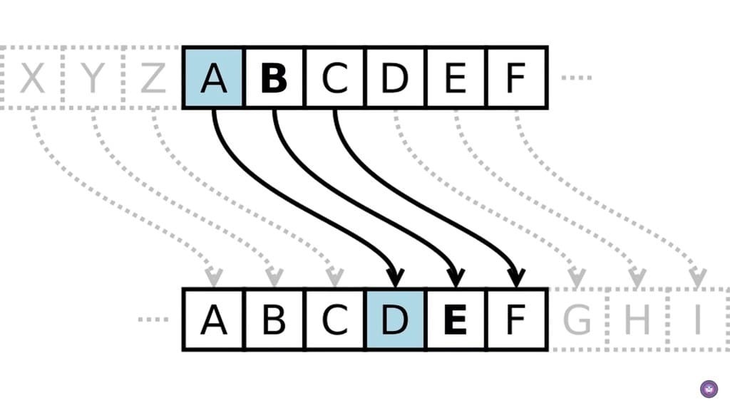 Внутри цифрового кода, было спрятано это послание: «Тиберий Клавдий Цезарь говорит: «lxxt>33m2mqkyv2gsq3q=j02ntk» Ооооокей… Тиберий Клавдий Цезарь…Это кто? Римский император, живший 2 тысячи лет назад. Цифры после его имени, очевидно, какой-то код. А имя Клавдий – это намек, намек на древнеримский шифр. Шифр Цезаря. Один из самых простых и древних методов прятать переписку от чужих глаз. Именно так полководец Гай Юлий Цезарь общался со своими генералами во время войны. Принцип шифра очень простой, это принцип сдвига и подстановки.