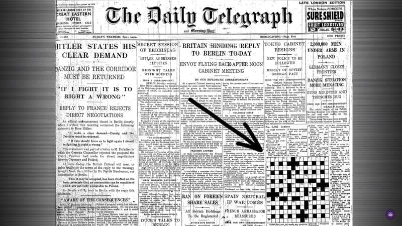 В мае 1966 года, в газету «Times» пришло письмо от женщины с острова Фиджы, которая сообщала, что ей все-таки удалось решить кроссворд №673 в газете от 4 апреля 1932 года. Таким образом, максимально затраченное время на разгадывание кроссворда составляет 34 года. Сейчас мало кто разгадывает кроссворды, они занимают очень много времени, да и вообще на них прошла мода, но тогда, в 40-х, мода на них была. Поэтому в газете «Daily Telegraph» был опубликован вот этот специально составленный кроссворд: