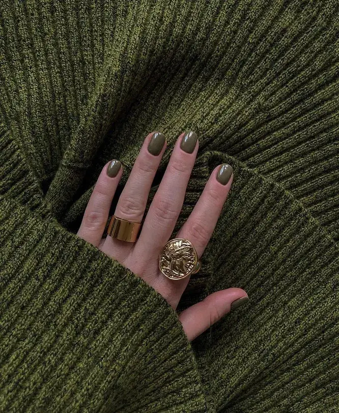 Зеленый цвет остается на пике популярности уже не первый сезон: его много в одежде, в макияже и, конечно, в маникюре. Весной посоревноваться с зеленым в актуальности сможет разве только фиолетовый — главный цвет наступившего года. Право на жизнь в этом сезоне имеют все оттенки: от нежно-салатового до глубокого болотного. Более нежные оттенки все же рекомендуем отложить до наступления тепла, а сейчас сосредоточиться на более насыщенных. Изумрудный, малахитовый, хвойный и даже хакки — будут смотреться на ногтях ярко, и вполне самодостаточно, так что можно ограничиться простым однотонным покрытием.
