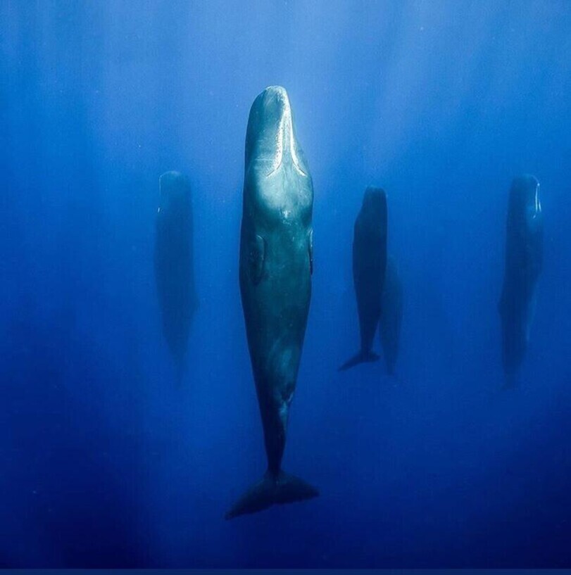 Спящие кашалоты - странное зрелище. Решая вздремнуть, эти киты, размером со школьный автобус, принимают вертикальное положение, отчего создается ощущение, что они стоят в воде. При этом они сбиваются в группы из 5-6 особей. Первое исследование, доказывающее, что киты спят в вертикальном положении, было опубликовано в 2008 году в журнале Current Biology: до этого ученым удавалось лишь наблюдать за сном китов в неволе, изучая движения их глаз. В этом исследовании говорилось, что киты проводят 7% времени, зависая в вертикальном положении у поверхности воды, где они дремлют от 10 до 15 минут. У кашалотов, живущих в неволе, прекращает активную деятельность только одно полушарие мозга. По мнению ученых, это позволяет быть готовым ко встрече с хищником и контролировать дыхание. Однако в дикой природе во время сна у кашалотов "отключаются" оба полушария.
