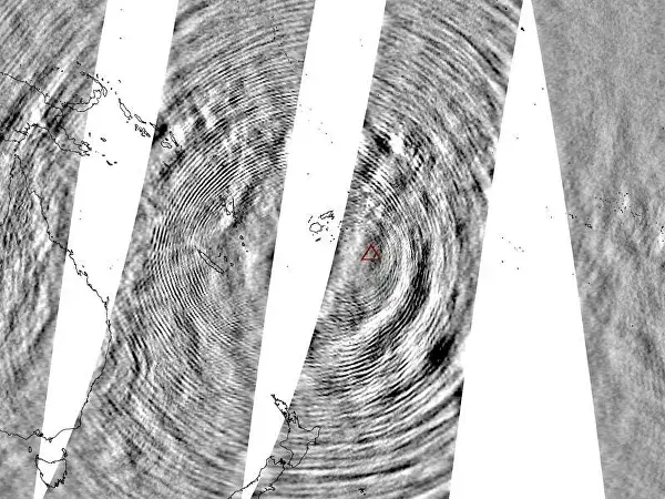 МОСКВА, 30 янв —Новости, Извержение вулкана у берегов Тонга вызвало загадочную концентрическую рябь в атмосфере. Ничего подобного ученые раньше не наблюдали. Волновые колебания зафиксировали как у поверхности, так и высоко над Землей в ионосфере. Уникальное явление объяснили гравитационными волнами, но все оказалось сложнее.