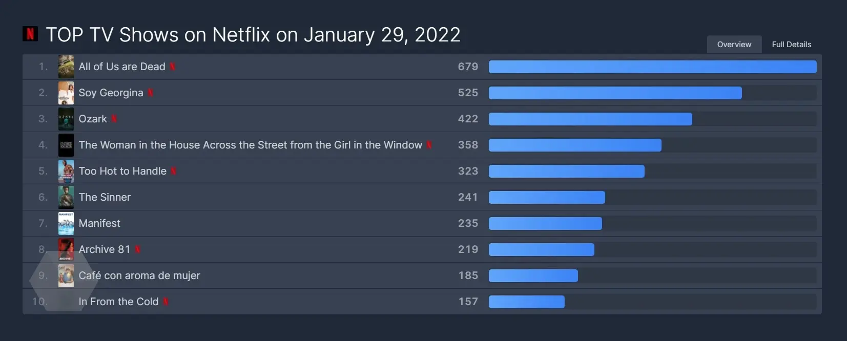 «Мы все мертвы» (All of Us Are Dead) возглавил мировой чарт сериалов на Netflix, следует из данных FlixPatrol. Корейское шоу вышло на сервисе 28 января, а уже 29-го взошло на первую строчку.