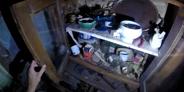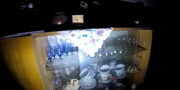 Зайдя внутрь сразу понял, что реально все эти годы здесь не было ни души. Всё стояло на своих местах, а ходить было невозможно из-за гнилого пола. На кухню заходить даже не стал, так как при входе провалился под пол, где был погреб. Осмотрел визуально кухню и пошел смотреть в комнате.