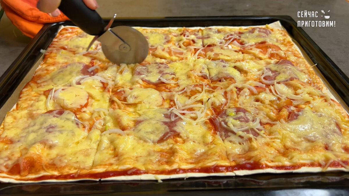 5.Выложить на кетчуп нарезанную сырокопченую колбасу.