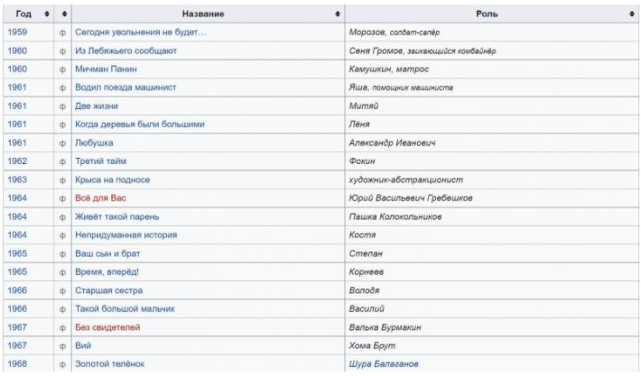 Фильмография советского актера