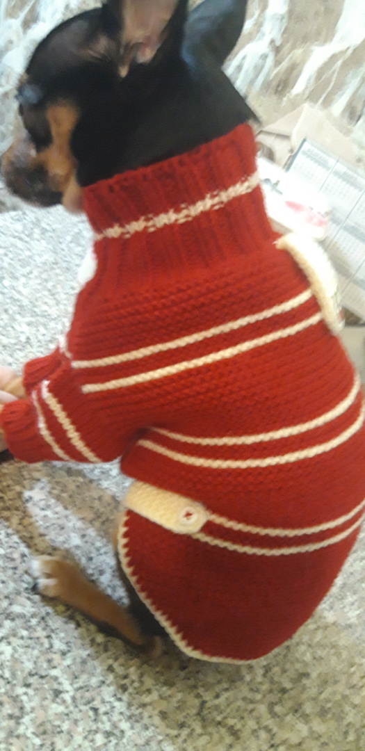 Нужно ли одевать домашнюю собачку на прогулку в холодное время года? Давайте порассуждаем. Некоторые считают,что в этом нет надобности,ведь у собаки есть шерсть. А если это маленькая гладкошерстная собачуха, которая мёрзнет даже дома? Которая так и норовит залезть на кровать под тёплый плед и сладко там уснуть. Если зимой на прогулке ваш хвостатый малыш трясётся, поднимает лапки,не хочет наступать на холодную землю или снег,если не сделав "свои дела" просится на ручки и спешит обратно домой- однозначно надо утепляться! Какой наряд выбрать для малыхи? Мой совет- самый тёплый модный свитер ручной работы из хорошей и качественной пряжи. Почему именно ручной работы? Ответ очевиден- свитерок будет связан именно по размерам собачки,не будем большим или маленьким,не будет стеснять движения вашего питомца и ,не маловажно, именно того цвета,который вы пожелаете.