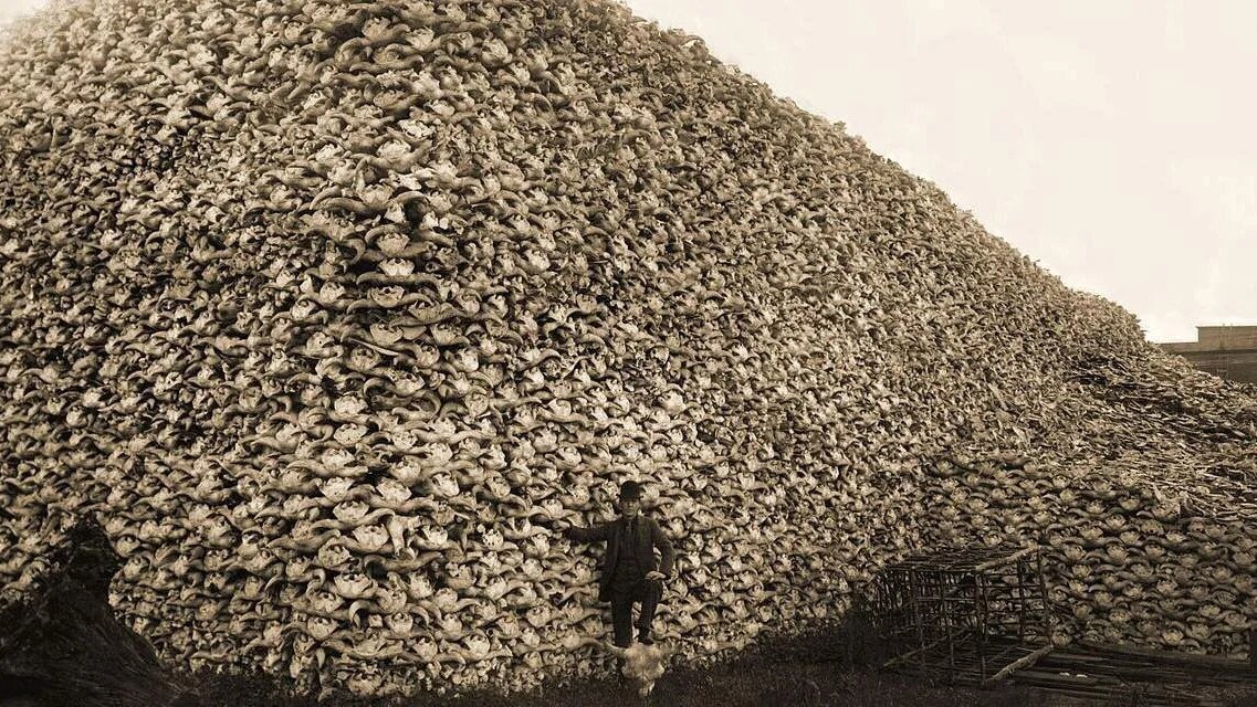 Кроме того, бизоны оказались отличным политическим инструментом. В попытке выжить индейцев с родных земель американцы принялись уничтожать животных сотнями тысяч, только 1 туша из 3 шла в дело, остальные бросались на съедение падальщикам.
