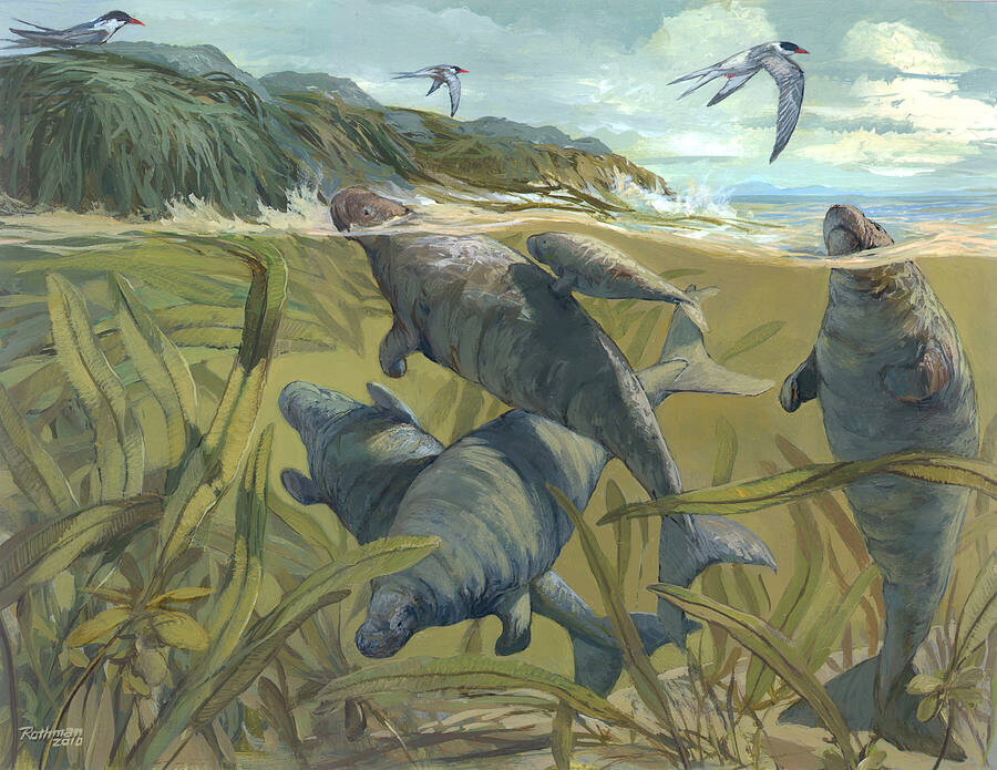 Всё, что осталось от голубей — многочисленные записи натуралистов и полторы тысячи чучел. От стеллеровой коровы не сохранилось даже этого. Пятитонные родственники ламантинов и дюгоней были малоподвижными, медлительными и почти не реагировали на происходящее вокруг. Они не имели естественных врагов, габариты защищали животных от мелких прибрежных хищников.
