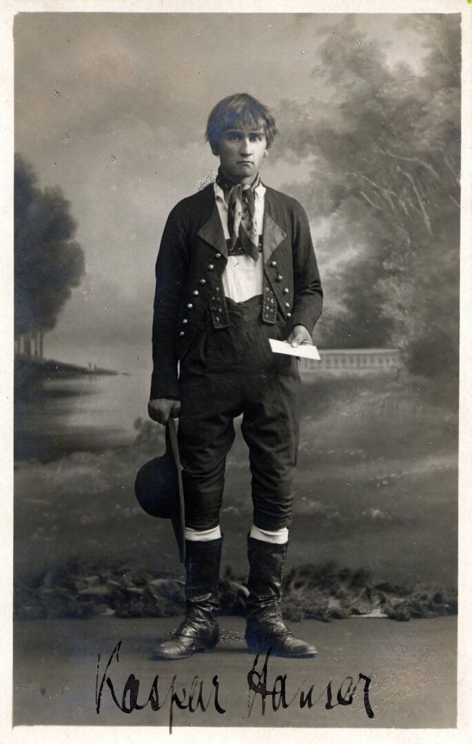 Каспар Хаузер 26 мая, Нюрнберг, Германия. 1828 год. Подросток лет семнадцати бесцельно бродит по улицам, сжимая в руке письмо, адресованное командующему фон Вессенигу. В письме говорится, что мальчик был взят на обучение в 1812 году, был обучен чтению и письму, но ему никогда не позволялось "сделать хоть шаг за дверь". Также было сказано, что мальчик должен стать "кавалеристом, как его отец" и командующий может либо принять его, либо повесить. После дотошных расспросов сумели выяснить, что его зовут Каспар Хаузер и он провел всю свою жизнь в "затемненной клетке" длиной 2 метра, шириной 1 метр и высотой 1,5 метра, в которой были только охапка соломы и три вырезанные из дерева игрушки (две лошадки и собачка). В полу камеры была проделана дырка, чтобы он мог справлять нужду. Найденыш почти не говорил, не мог есть ничего, кроме воды и черного хлеба, всех людей называл мальчиками, а всех животных - лошадками. Полиция пыталась выяснить, откуда он пришел и кто тот преступник, что сделал из мальчика дикаря, но это так и не удалось узнать. Следующие несколько лет о нем заботились то одни люди, то другие, взяв к себе в дом и ухаживая за ним. Пока 14 декабря 1833 года Каспар не был найден с ножевым ранением груди. Рядом был найден шёлковый кошелёк пурпурного цвета, а в нем записка, изготовленная таким образом, что прочесть её можно было только в зеркальном отражении. Она гласила: "Хаузер вам сможет точно описать, как я выгляжу и откуда я взялся. Чтобы не утруждать Хаузера, я хочу сам сказать вам, откуда я появился с баварской границы на реке я вам даже имя скажу: М.Л.О