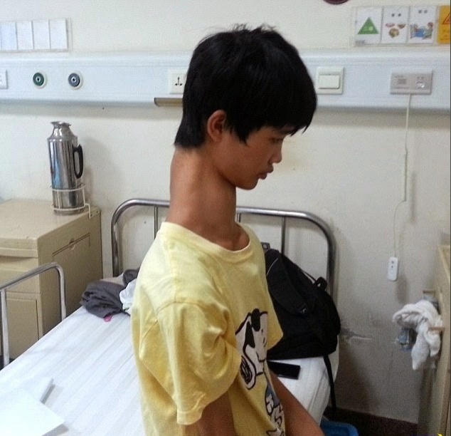 У 15-летнего Фу Венжуи достаточно редкая медицинская аномалия. Его называют "жирафом" и у него действительно шея примерно в два раза длиннее, чем у других людей. А всё потому, что если у обычных людей обычно 7 шейных позвонков, то у Фу их 10. В данный момент парень ждет специальную операцию, в ходе которое врач надеются удалить лишние позвонки так, чтобы не причинить вред нервной системе и всему организму в целом. И проблема даже не в том, что шея длинная, а в том, что лишние позвонки начали давить на нервы в области шеи и тем самым причиняют нестерпимую боль. Интересно, что в 6-летнем возрасте врачи обратили внимание на слишком длинную шею, но поставили диагноз сколиоз. Теперь же врачи поняли свою ошибку и пообещали исправить, благо нашелся спонсор, который оплатит дорогую и опасную операцию