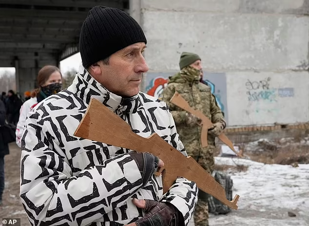 И в связи с этим, члены подразделений добровольческой aрмии в Киеве начали тренироваться с макетами oружия.